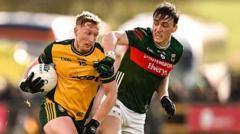 Donegal defeat Mayo as Armagh fall to RoscommonImage source, Getty ImagesImage caption, Oisín Gallen is challenged by Donnacha McHugh on SundayPublished25 minutes agoDonegal maintained their perfect record in Division One, making it three wins from three with a comfortable 1-19 to 0-14 win over Mayo at a sold-out O’Donnell Park.A second half Armagh rally was not enough as they slipped to a second straight defeat in Division One, going down 3-18 to 0-24 to Roscommon in Dr Hyde Park.Tyrone banked their first win in Division Two as Malachy O’Rourke’s side impressed in a 2-23 to 1-14 win over Cavan, who are joint bottom of the table with Offaly.In Division Three, Fermanagh are adrift at the bottom as their 2-18 to 0-18 defeat by Clare at Brewster Park leaves Declan Bonner’s side without anything to show after three games.It’s the same story for Antrim in Division Four as Mark Doran’s side are without anything to show from their three games with Longford powering to a 1-27 to 1-14 win in Portglenone.Donegal set the tone early against MayoImage source, Getty ImagesImage caption, Conor O’Donnell scores Donegal’s goalIt took nine minutes for the first score of the game to arrive in Letterkenny.After a cagey start, two efforts apiece from Conor McCahill and Oisin Gallen saw Donegal race into an early lead.Ryan O’Donoghue finally got Mayo off the mark on 16 minutes with a two-point free, but it would take 27 minutes for the Connacht men to register a score from play.Gallen landed five points of his own throughout the half as Donegal went in leading 0-11 to 0-5 at the break.Mayo had chances to reduce the arrears early in the second half but Darragh Beirne, Conor Loftus and Ryan O’Donoghue all had goal chances well saved by Gavin Mulreaney.Ryan McHugh floated over a superb two pointer to re-establish Donegal’s six-point advantage before Paedar Mogan set up Conor O’Donnell to punch to the back of the net.McCahill and Finbarr Roarty added scores to give Donegal a 1-16 to 0-8 lead midway through the second half.Andy Moran’s side replied with three scores in a row before Beirne was once again denied a sure goal as Mulreaney made a brave save from close range.Late scores from McCahill and O’Donnell sealed a comfortable win for Jim McGuinness’ side ahead of their trip to take on Armagh next weekend.Armagh fightback falls shortImage source, InphoImage caption, Roscommon’s Enda Smith is challenged by Gareth MurphyA disallowed goal in the second half from Armagh’s Ross McQuillan ultimately proved fatal, but Roscommon’s platform for victory was built in the first half.A two-pointer from Diarmuid Murtagh in the opening minute set the tone as after Oisin O’Neill opened Armagh’s account at the other end, the Roscommon captain was put through for a third-minute goal.It would get better for the hosts as Blaine Hughes’ subsequent kick-out went awry and Enda Smith was put in to thump home.The sides traded a pair of scores before Murtagh kicked another two-pointer, while the crossbar denied Dylan Ruane a third goal for the hosts.Still, they pushed further clear with a Daire Cregg free and a third Murtagh two-pointer – this time from a free – before Armagh briefly rallied with points from Cian McConville and Ross McQuillan.However, a two-pointer from Cregg and a further two scores extended the gap to 14 before Armagh enjoyed a decent spell with three points, but a Cregg free on the stroke of half-time left Roscommon with a commanding 2-14 to 0-8 advantage.Smith extended the gap straight after the break, but Armagh roared back with the next six points, including back-to-back two-pointers from Oisin O’Neill.The Orchardmen thought they were right back in it in the 47th minute when McQuillan crashed home, but the goal was ruled out as his side had left less than four players in their own half and instead of a four-point gap, it was eight with Murtagh tapping over a free in front of the posts.This four-point swing was ultimately crucial but so too was Roscommon’s third goal in the 61st minute.With just six between them, substitutes combined as Jack Duggan sent a ball inside for Paul Carey to palm home, but Armagh were not done and two-pointers from O’Neill and McConville either side of a Tomas McCormack point brought them to within four.They had a big goal chance with minutes to play when Jason Duffy fed inside to McConville, but he could only divert into the arms of Aaron Brady.Armagh kept pressing, but a Greg McCabe shot whistled over at the death as they slipped to defeat with Roscommon making it back-to-back wins over Ulster opposition.Canavan to the fore in Tyrone win over CavanImage source, InphoImage caption, Aidan Clarke gets past the challenge of Dara McVeetyDarragh Canavan struck nine points a man of the match display as Tyrone secured their first win of the campaign with a commanding victory over Cavan.The Red Hands recovered from a shaky start to take over in the second period and with 12 different scorers, they will be happy with their day’s work against Dermot McCabe’s men, who are still without a point on the board.Cavan enjoyed a good start as, after Eoin McElholm kicked the first of his four points for Tyrone, Oisin Brady nailed a two-point free for the Breffni men, who then had a goal as Tiernan Madden finished from close range.However, Tyrone responded well with the nest three scores and although Peter Corrigan and Gerard Smith hit back, the game was level in the 17th minute as Brian Kennedy took a pass from Seanie O’Donnell and lashed home.It remained even heading to the break but Tyrone finished strong with Kennedy turning provider for Mattie Donnelly to hit Tyrone’s second goal and a Canavan point straight after opened a 2-8 to 1-7 lead at the break.Cavan introduced Paddy Lynch at the break and he carried most of the fight in the second period with five points, but his side could not gain any real momentum as Tyrone began to pull away.A two-