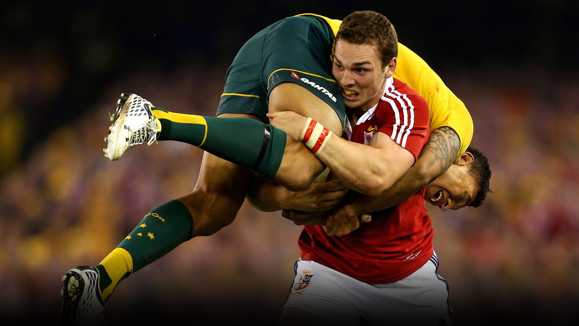 Following news that George North will retire at the end of the 2026 season, relive the iconic moment he lifted Australia’s Israel Folau off the ground as he tried to tackle him during the second Test match between the sides during the 2013 tour.