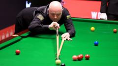 Earlier on, in frame 21, Selby showed his frustration by hitting the cue against the table after missing a red.